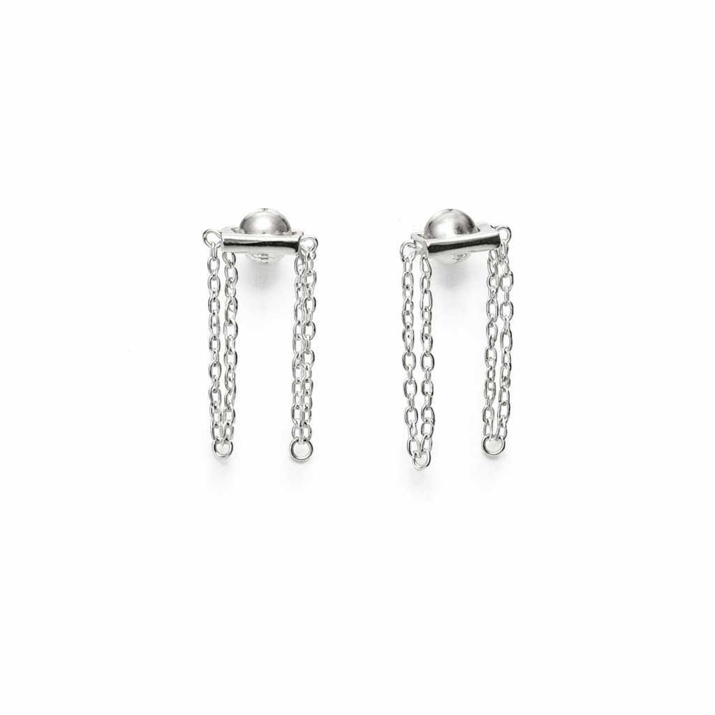 Cercei mici din argint 925 cu bară și lănțișoare, design modern și minimalist. Bijuterie elegantă, versatilă, ideală pentru ținute casual sau seară.