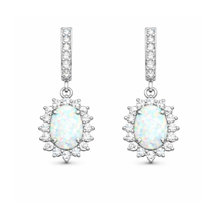Cercei Christine din argint 925 cu opal alb și zirconiu, design elegant și modern. Bijuterie strălucitoare, perfectă pentru ocazii speciale sau cadou.