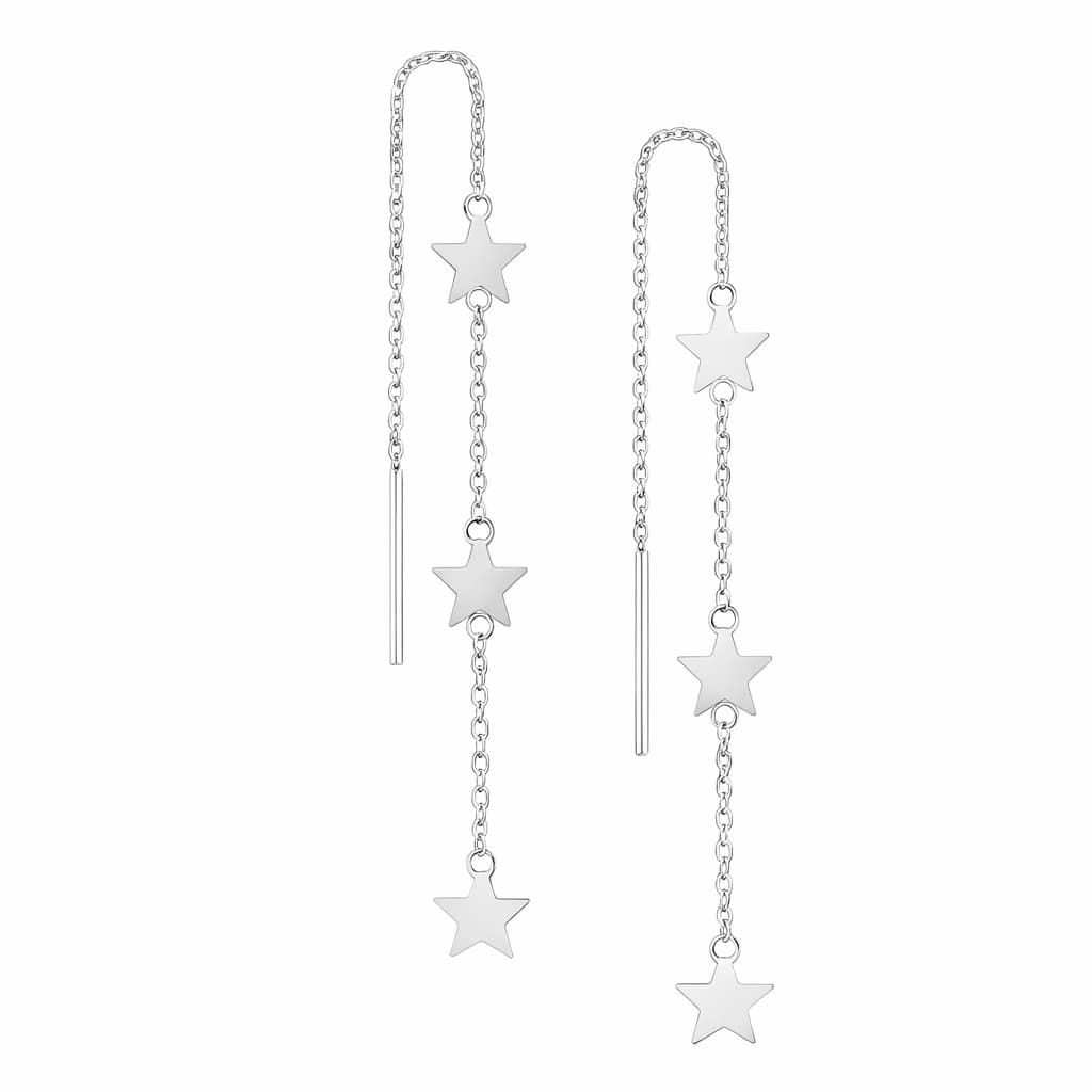 Cercei Star Line din argint 925 cu trei stele căzătoare pe lănțișor fin. Delicați, moderni și ideali pentru purtare zilnică sau cadou.