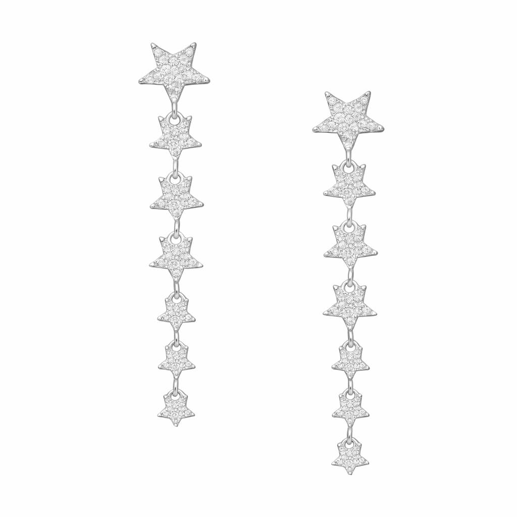 Cercei lungi Stella din argint 925 rodiat cu zirconiu, design feminin cu steluțe strălucitoare. Accesoriu elegant, ideal pentru seară sau cadou.