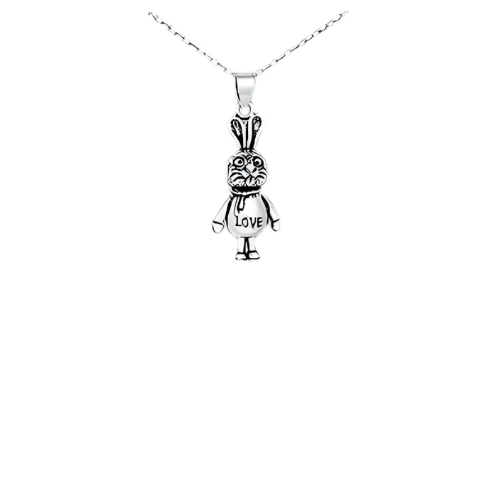 Pandantivul iepuraș din argint 925 cu lăbuțe mobile este o bijuterie unicat ce aduce eleganță și simbolism în garderoba ta. Gravura LOVE completează designul jucăuș și delicat, iar mobilitatea lăbuțelor îl face interactiv și fermecător. Iepurele este asociat cu luna și simbolizează fertilitatea, renașterea ciclică, agilitatea și vigilența. În mitologia greacă, celtică sau budistă, iepurele este legat de zeițele lunii și de mesagerii zeilor, reprezentând înțelepciune, nemurire și protecție. Pandantivul este cadoul ideal pentru copii sau femei, combinând frumusețea, simbolismul și originalitatea într-o bijuterie memorabilă.