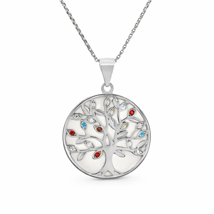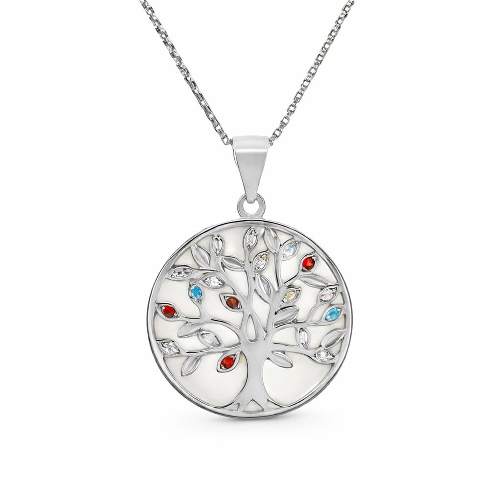 Pandantiv Arborele Vieții din argint 925, cu zirconiu și abalone, simbol al sănătății și conexiunii. Bijuterie elegantă, perfectă pentru cadou.