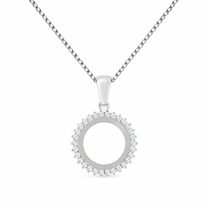 Pandantiv cerc din argint 925, cu zirconiu și placare cu rodiu, simbol al echilibrului și armoniei. Bijuterie elegantă, ideală pentru purtare zilnică.