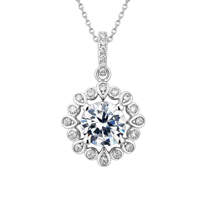 Pandantivul Caroline din argint 925 este realizat cu atenție la detalii și placat cu rodiu pentru un luciu de durată. Mici pietricele cubic zirconia albe îi conferă strălucire și rafinament, transformând bijuteria într-un accesoriu versatil, potrivit atât pentru ocazii speciale, cât și pentru ținute casual. Designul delicat și elegant îl face ideal pentru mirese, dar și pentru orice femeie care dorește să adauge un strop de glamour look-ului său. Pandantivul Caroline este o piesă de colecție, ușor de asortat cu alte bijuterii din argint, și reprezintă cadoul perfect pentru tine sau pentru o persoană dragă, combinând eleganța cu simbolismul strălucirii și purității.
