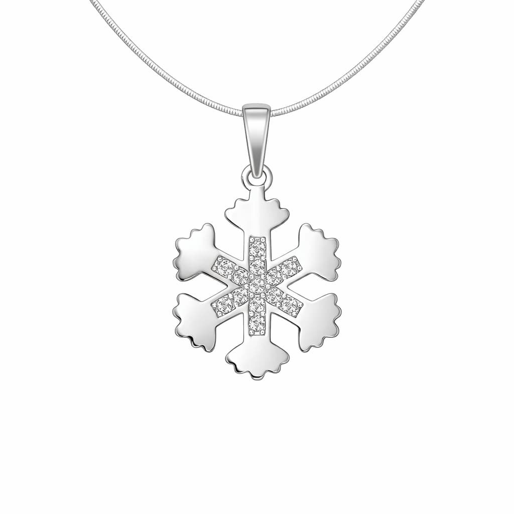 Pandantiv fulg de zăpadă din argint 925 rodiat cu zirconiu, bijuterie delicată ce simbolizează puritatea și unicitatea. Ideal pentru cadou elegant de iarnă.