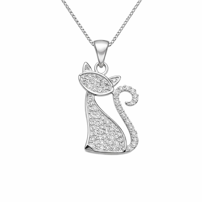 Pandantiv pisică Pretty din argint 925 cu zirconiu, bijuterie delicată și strălucitoare. Accesoriu ideal pentru iubitorii de pisici, perfect ca dar special.